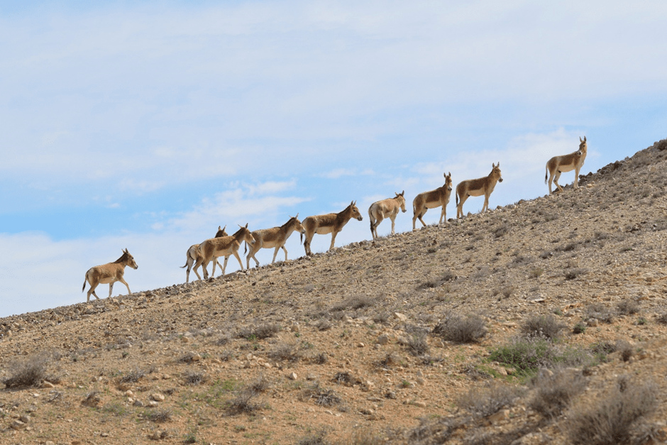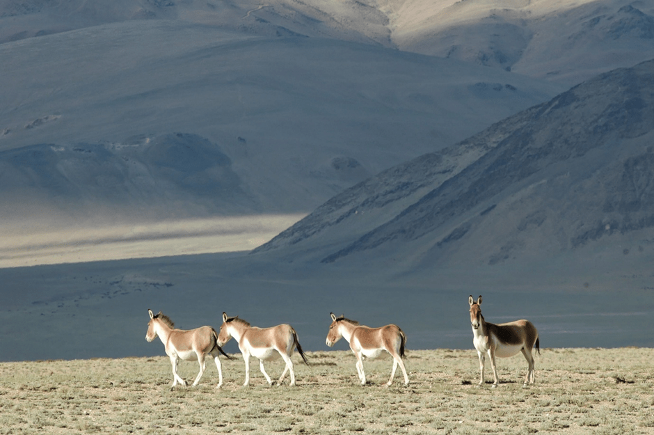 The onager is closely related to the African wild ass, as they both share the same ancestor. There are now probably less than 600 of the latter in the wild, with the species listed as critically endangered by the International Union for the Conservation of Nature. As with zebra, competition with livestock for grazing and water supplies, along with hunting for food and traditional medicines, pose major threats notwithstanding their protected status. Whilst the Asian wild ass or onager has fared better, one of five sub-species (the Syrian wild ass) is now extinct, two are endangered, and two are near threatened. Habitat loss is the main reason for decline in populations. The onager formerly had a wide territorial range from Europe across south west, central and northern Asia. Typically, onagers live in hot and cold deserts together with other arid and semi-arid regions, including grassland plains, steppes and savannahs. Persian onagers are currently being reintroduced in the Middle East as replacements for the extinct Syrian wild ass in the Arabian Peninsula, Israel and Jordan. Similarly, Rewilding Europe has a re-introduction project for onager (kulan) in the steppe of southern Ukraine. Kiang are genetically distinct species of wild ass native to the Tibetan Plateau, Ladakh and Northern Nepal with most distribution in China.
